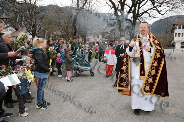 Rund 250 Gläubige versammelten sich am Palmsonntag traditionell vor dem Passionstheater in Oberammergau, um eine alte christliche Tradition zu feiern - die Weihe der Palmbuschen. Die katholischen und evangelischen Kirchengemeinden hatten gemeinsam zu der Zeremonie eingeladen und setzten damit ein sichtbares Zeichen gelebter Ökumene. Pünktlich um neun Uhr begann die feierliche Segnung. Musikalisch begleitet wurde der Auftakt vom Oberammergauer Trommlerzug. Dekan Albert Hack von der katholischen Kirche und Pfarrerin Heike Brunner-Wild von der evangelischen Gemeinde begrüßten ihre Gäste mit einem gemeinsamen Gebet und nahmen anschließend die Segnung der kunstvoll gebundenen Palmbuschen vor. Sichtlich stolz auf ihre Palmbuschen waren die Jüngsten unter den Gläubigen. Der Palmsonntag markiert den Beginn der Karwoche und ist damit der Auftakt zur wichtigsten Zeit im christlichen Jahreskreis.Für viele Gläubige aus Oberammergau und Umgebung ist die Segnung ihrer Palmbuschen nicht nur ein festes Ritual, sondern auch Ausdruck ihres Glaubens und der Zusammengehörigkeit der christlichen Gemeinden.