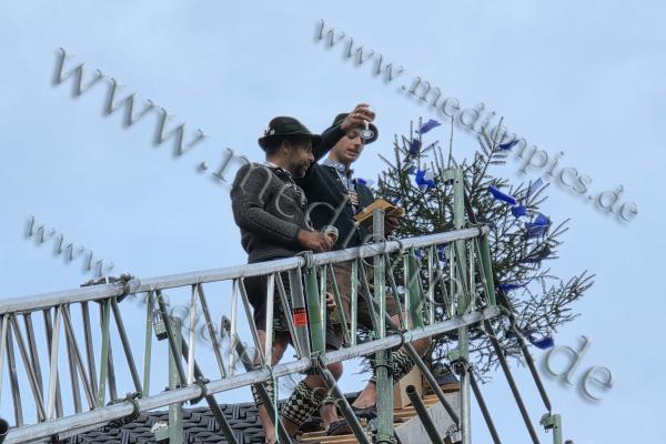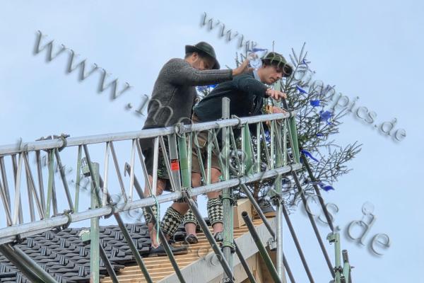 Mit einem festlichen Hebauf am neuen Bürgerhaus hat die Gemeinde Ohlstadt am Wochenende einen wichtigen Meilenstein ihres größten Bauprojekts gefeiert. Bürgermeister Christian Scheuerer dankte in seiner Ansprache allen Handwerkern, Planern und Gemeinderäten, die den Weg bis hierhin begleitet haben.