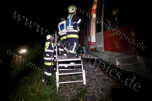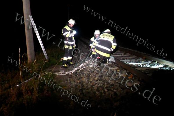 Heftige Sturmböen haben am späten Samstagabend für einen Großeinsatz der Feuerwehr Bad Kohlgrub gesorgt. Gegen 21:35 Uhr stürzte ein Baum auf die Oberleitung der Bahnstrecke Murnau – Oberammergau. Ein Zug mit rund 40 Fahrgästen kam mitten im Wald zum Stehen – der Strom war komplett ausgefallen, nur die Notbeleuchtung funktionierte noch.Da eine Weiterfahrt unmöglich war, rückte die Feuerwehr Bad Kohlgrub aus, um die Passagiere sicher aus dem Zug zu evakuieren. „Nachdem die Lage erkundet wurde, haben wir alles für die Evakuierung vorbereitet. Dies geschah in enger Absprache mit dem Notfallmanager der Deutschen Bahn und der Bundespolizei“, erklärte Kommandant Josef Mangold junior.Die Einsatzkräfte mussten über einen steilen Hang zum Zug vordringen. Sie legten Steckleitern aus, spannten Sicherungsseile und richteten Scheinwerfer ein, um das unwegsame Gelände auszuleuchten. Mit Motorsägen wurde ein Notweg freigeschnitten. Zunächst wurden ältere und gesundheitlich eingeschränkte Personen in Sicherheit gebracht, unterstützt vom BRK-Rettungsdienst. „Wir haben alles hergerichtet, dass die Fahrgäste sicher zur Straße kommen. Das Gelände war sehr steil und schwierig“, erklärte Mangold. Die Deutsche Bahn stellte währenddessen Großraumtaxis bereit, um die Fahrgäste weiterzubefördern. Gegen Mitternacht war der Einsatz beendet. Die Bahnstrecke bleibt bis auf Weiteres gesperrt.Im OTon: Erster Kommandant Josef Mangold junior.