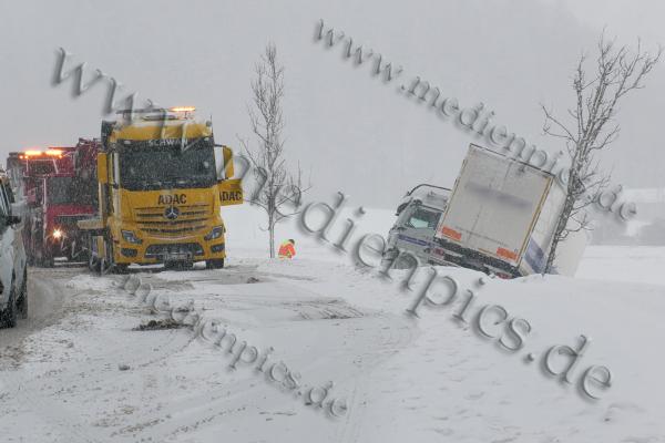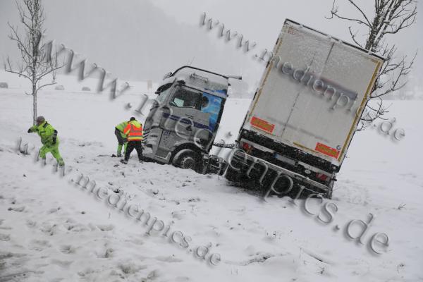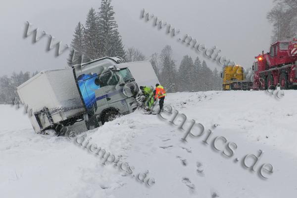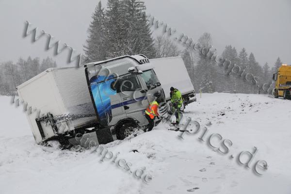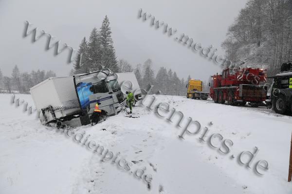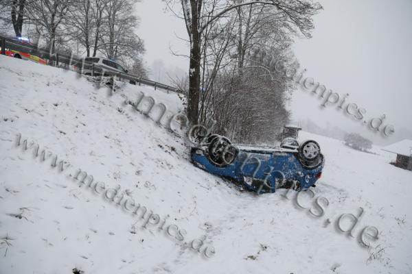 Pressemitteilung der Polizei Murnau: Bad Kohlgrub/ Ortseingang von Murnau kommend: Am 21.11.2025 gegen 07:35 Uhr fuhr eine 33-jährige Bad Kohlgruberin mit ihrem Pkw VW von einer Grundstückeinfahrt auf die Staatsstraße auf. Im Fahrzeug der 33-jährigen befanden sich ihr 4-jähriger Sohn und ihre 7-jährige Tochter. Ein 19-jähriger Oberammergauer fuhr mit seinem Pkw Dacia auf der Staatsstraße in gleicher Richtung und konnte auf Grund der Schneeglätte nicht mehr rechtzeitig abbremsen, so dass er auf den Pkw der Bad Kohlgruberin auffuhr. Hierdurch kam der Oberammergauer mit seinem Pkw von der Fahrbahn ab, geriet leicht auf die Leitplanke und überschlug sich, so dass sein Pkw schließlich im Graben neben der Fahrbahn auf dem Dach zum Liegen kam.Durch den Unfall wurden die 33-jährige Bad Kohlgruberin, ihr 4-jähriger Sohn und der 19-jährige Oberammergauer leicht verletzt und mit dem Rettungswagen ins Krankenhaus eingeliefert. Es entstand Sachschaden in Gesamthöhe von rund 15.000 Euro. Der Verkehr wurde während der Unfallaufnahme durch die Feuerwehr Bad Kohlgrub geregelt.Die Polizeiinspektion Murnau nahm die Ermittlungen wegen fahrlässiger Körperverletzung auf.Unsere Erstmeldung:Eine kräftige Neuschneefront hat am Freitagvormittag im Landkreis Garmisch-Partenkirchen für erhebliche Verkehrsprobleme gesorgt. Innerhalb kurzer Zeit fielen örtlich bis zu 20 Zentimeter Schnee – mit Folgen für zahlreiche Verkehrsteilnehmende.Bei Bad Kohlgrub kam es kurz nach der Ortsauffahrt in Richtung Murnau zu einem schweren Unfall zwischen zwei Fahrzeugen. Einer der beteiligten Fahrzeuge überschlug sich und rutschte anschließend einen Hang hinab. Das Auto blieb schließlich auf dem Dach liegen. Der Fahrer konnte sich glücklicherweise selbst aus dem Fahrzeugwrack befreien. Insgesamt wurden bei dem Zusammenstoß drei Personen verletzt. Sie mussten zur weiteren Behandlung in umliegende Krankenhäuser gebracht werden. Die Feuerwehr aus Bad Kohlgrub sicherte die Unfallstelle ab und richtete eine halbseitige Sperrung der St2062 ein. Zudem unterstützten sie bei den Aufräumarbeiten. Nur wenige Kilometer weiter ereignete sich ein weiterer Unfall: Auf der B23 zwischen Oberammergau und Ettal geriet ein 40-Tonnen-Lkw auf der schneebedeckten Fahrbahn ins Schleudern. Der Sattelzug rutschte von der Straße und kam erst im Straßengraben zum Stillstand, wo sich das Führerhaus mit dem Auflieger verkeilte. Für die Bergung musste ein Spezialunternehmen anrücken. Der Schaden beläuft sich auf rund 30.000 Euro. Die Polizei warnt angesichts der aktuellen Witterung vor glatten Straßen und rät zu besonderer Vorsicht sowie angepasster Geschwindigkeit.