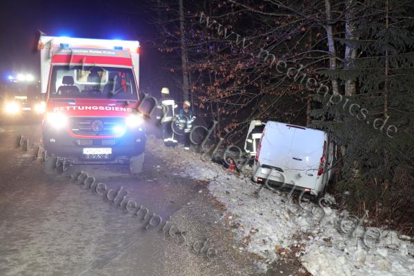Am Donnerstagabend kam es auf der Verbindungsstraße zwischen Schwaigen und Grafenaschau zu einem schweren Verkehrsunfall. Ein Transporterfahrer verlor in einer leichten Linkskurve die Kontrolle über sein Fahrzeug und fuhr nahezu ungebremst geradeaus in einen Baum.Wie die Spurenlage an der Unfallstelle zeigt, setzte der Fahrer offenbar noch zu Bremsversuchen an – jedoch zu spät. Der Transporter prallte frontal gegen einen Baum, der Frontbereich des Fahrzeugs wurde vollständig zerstört. Trotz der Wucht des Aufpralls erlitt der Mann lediglich leichte Verletzungen. Er wurde zur weiteren Untersuchung in ein Krankenhaus gebracht.Zur Absicherung der Unfallstelle sowie zum vorbeugenden Brandschutz rückte die Feuerwehr Grafenaschau mit 18 Einsatzkräften an. Am Transporter entstand Totalschaden. Die Polizei hat die Ermittlungen zur genauen Unfallursache aufgenommen.