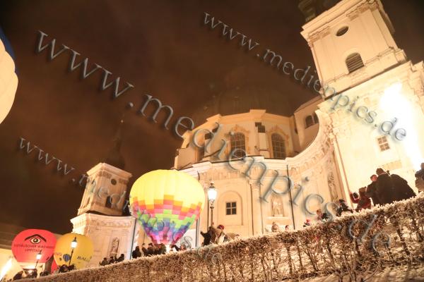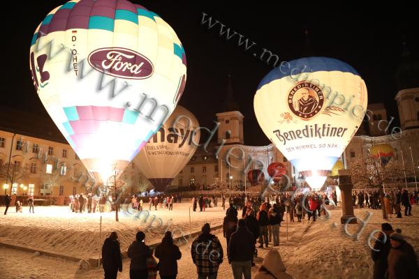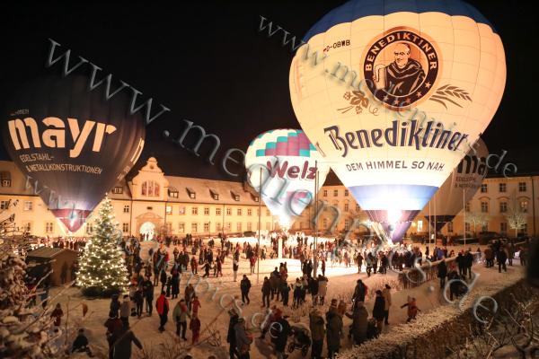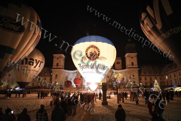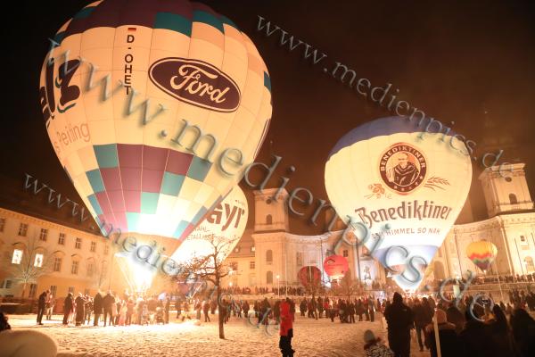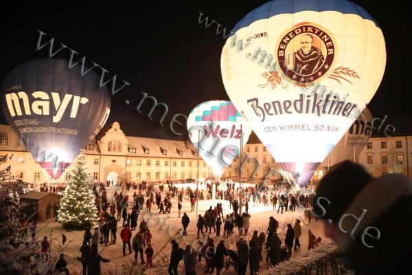 Eisige Kälte und dichter Nebel lagen am Sonntagabend über Ettal. Umso eindrucksvoller hob sich das Ballonglühen im Klosterhof der Benediktinerabtei Ettal ab. Immer wieder erleuchteten die Flammen der Brenner den Himmel. Rund sieben Heißluftballone tauchten den historischen Innenhof in warmes Licht. Das traditionelle Spektakel lockt jedes Jahr kurz vor dem Jahreswechsel zahlreiche Besucher an. Für das leibliche Wohl sorgten Stände mit herzhaften Speisen und heißen Getränken.
