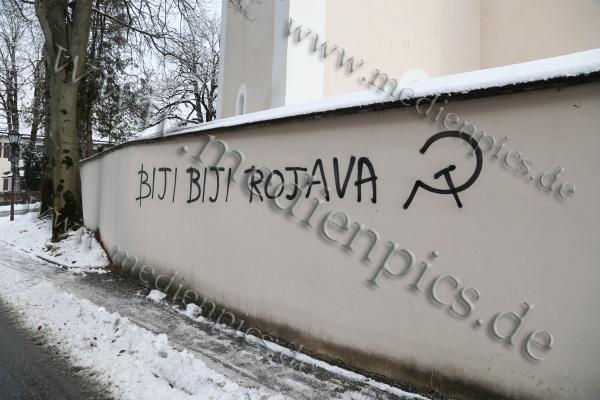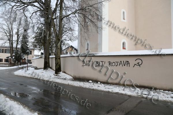 Noch ermittelt die Polizei Oberammergau, wer für die jüngsten Graffiti-Schmierereien im Passionsdorf verantwortlich ist. Fest steht jedoch bereits jetzt: Sollten die Täter gefasst werden, drohen empfindliche Konsequenzen. Graffiti gelten rechtlich als Sachbeschädigung – und damit keineswegs als harmloser Streich. Im Raum stehen hohe Geldstrafen oder sogar Freiheitsstrafen von bis zu zwei Jahren.Wie die Polizei Oberammergau mitteilt, „Die Schriftsätze wurden an den Kirchenmauern in der Nacht auf den 23. Januar aufgesprüht“. Neben der Kirche rückte in dieser Woche auch der nahegelegene Jugendtreff in den Fokus der Ermittlungen. Dort war es bereits zuvor zu ähnlichen Vorfällen gekommen. „Erst letzte Woche haben wir die Wand reinigen lassen, jetzt wurde sie erneut beschmiert“, erklärte Bürgermeister Andreas Rödl.Neben den Schmierereien an der Kirche tauchten auch am Jugendtreff neue Parolen auf. Dort ist unter anderem der Satz „O-Gau Nazi frei“ zu lesen, begleitet vom Hammer-und-Sichel-Symbol, das ebenfalls auf der Kirchenmauer angebracht wurde.Der entstandene Schaden beläuft sich nach ersten Schätzungen auf mehrere Tausend Euro. „Wir ermitteln derzeit in alle Richtungen“, so die Polizei. Auch wenn dies offiziell nicht bestätigt wird, geht man offenbar von jüngeren Tätern aus.Die Polizei Oberammergau bittet die Bevölkerung um Mithilfe. Zeugen werden gebeten, sich zu melden, insbesondere wenn sie in der Nacht auf den 23. Januar verdächtige Beobachtungen im Bereich der Kirche gemacht haben oder in den vergangenen Nächten Auffälligkeiten rund um den Jugendtreff bemerkt haben.
