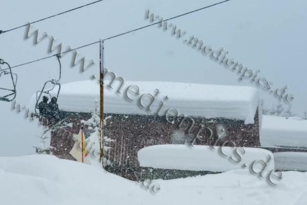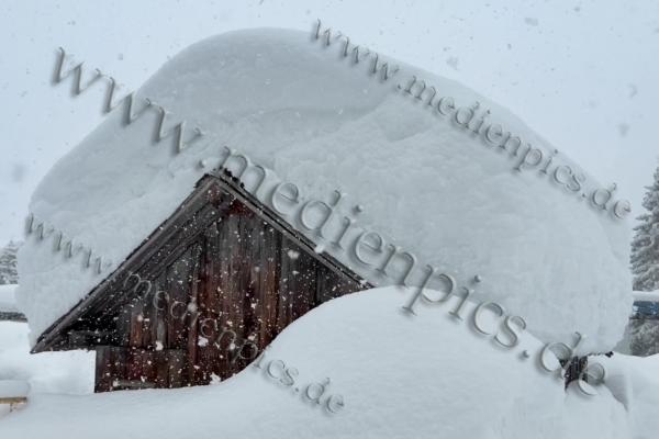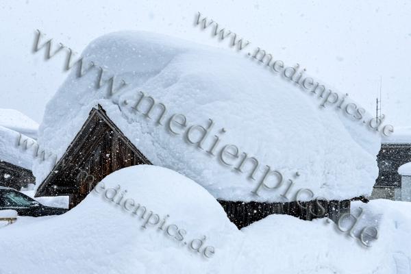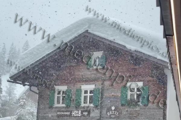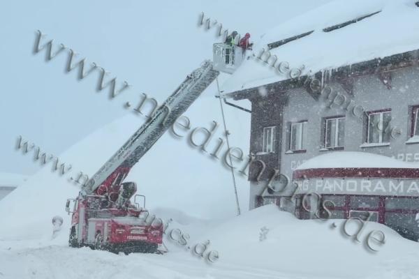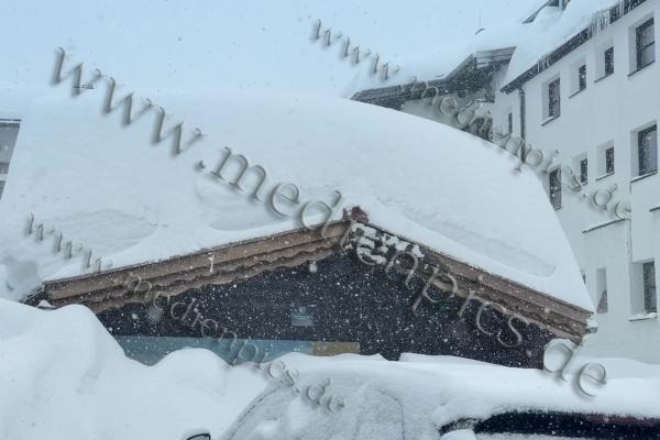 Auch in St. Christoph am Arlberg türmen sich die Schneemassen. Inzwischen musste sogar die Feuerwehr anrücken, um mit der Drehleiter die Dächer von den Schneelasten zu befreien. Die Schneelast ist für viele Dächer inzwischen zu hoch. Es schneit weiterhin kräftig. Ohne Schneeketten kommen Fahrzeuge kaum voran. Die Räumdienste sind im Dauereinsatz.