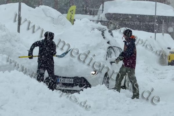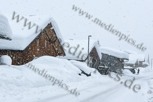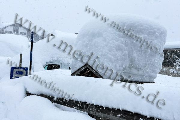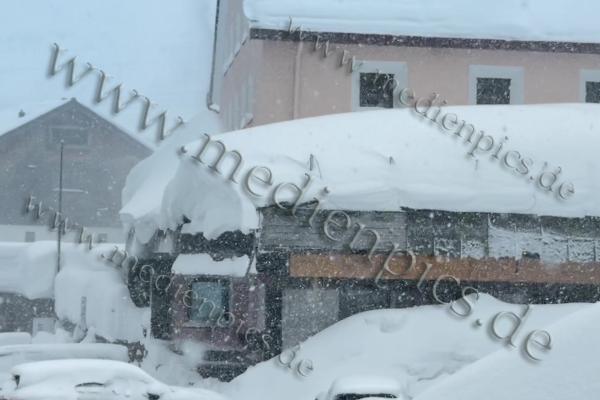 Noch dramatischer ist die Situation in Lech und Oberlech in Vorarlberg. Dort fielen die Schneemengen so massiv aus, dass die Orte Lech und Zürs (Stand: 14:25 Uhr) von der Außenwelt abgeschnitten sind. Die Behörden gaben eine Warnung zu der Lawinengefahr heraus. Die Schneedecke türmt sich auf nahezu zwei Meter. Verkehrszeichen sind unter der weißen Last verschwunden, Fahrzeuge komplett eingeschneit und nicht mehr auffindbar.