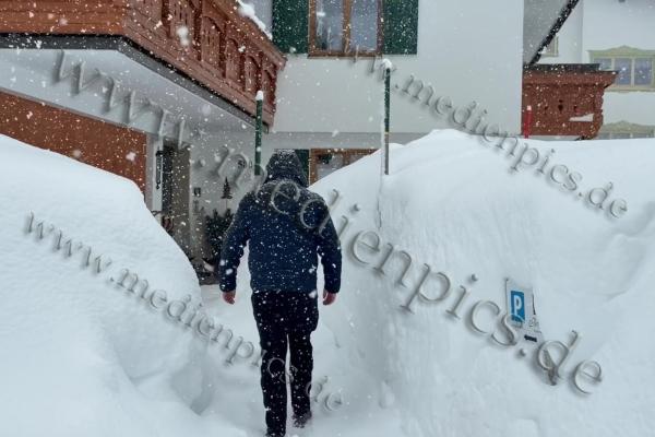 Am Samstag verschärfte sich die Lage weiter: Enorme Neuschneemengen führten zu erheblichen Behinderungen. In Stuben am Arlberg mussten Straßen gesperrt werden. Autos blieben im Schnee stecken oder verschwanden vollständig unter den Schneemassen. Auf den Dächern lagen rund 1,50 Meter Schnee. Geparkte Fahrzeuge waren teilweise nicht mehr zu erkennen und mussten mit Schaufeln freigelegt werden. Skifahrer bewegten sich mit ihren Skiern direkt durch den Ort, da regulärer Verkehr kaum noch möglich war.