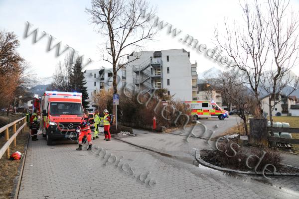 Ein Zimmerbrand in einem Altenheim am Hölzlweg in Garmisch-Partenkirchen hat am Donnerstagnachmittag einen Großeinsatz von Feuerwehr und Rettungsdienst ausgelöst. Gegen 17 Uhr schlug die automatische Brandmeldeanlage Alarm – kurze Zeit später breitete sich Rauch und Flammen aus. Die Leitstelle löste umgehend Großalarm aus.Rund 75 ehrenamtliche Einsatzkräfte der Feuerwehren aus Garmisch und Partenkirchen rückten an. Auch der Rettungsdienst war mit einem Großaufgebot vor Ort, darunter zahlreiche freiwillige Helfer aus den BRK-Bereitschaften. 13 Rettungswagen, 6 Krankenwagen, 2 Hubschrauber und 6 Notärzte waren im Einsatz – insgesamt 64 Einsatzkräfte. Im zweiten Obergeschoss war in einem Zimmer ein Feuer ausgebrochen. Die Flammen griffen auf eine Matratze und weitere Einrichtungsgegenstände über. Die dort gepflegte Person erlitt schwere Brandverletzungen. Das Pflegepersonal reagierte nach Angaben der Einsatzkräfte vorbildlich und entschlossen. Noch vor Eintreffen der Feuerwehr wurden erste Löschmaßnahmen eingeleitet und die betroffene Abteilung in kürzester Zeit evakuiert. Durch das schnelle und umsichtige Handeln konnten weitere Bewohner in Sicherheit gebracht werden. Zwei Pflegekräfte erlitten dabei leichte Verletzungen und wurden ins Klinikum Garmisch-Partenkirchen und in die Unfallklinik Murnau gebracht. Zudem waren 13 Senioren betroffen, welche nach Einsatzende zurück in ihre Zimmer konnten. Die schwerverletzte Person wurde zunächst notfallmedizinisch versorgt und anschließend mit dem Rettungshubschrauber „Christoph Murnau“ in die Unfallklinik nach Murnau geflogen. Dort befindet sich eine Brandverletztenstation, die auf die Behandlung schwerer Verbrennungen spezialisiert ist.Unter Atemschutz drang die Feuerwehr im sogenannten Innenangriff bis zum Brandherd vor. Parallel wurde von außen über eine Drehleiter vorgegangen. Das Inventar wurde abgelöscht und ins Freie gebracht. Nach Abschluss der Löscharbeiten übernahm die Kriminalpolizei die Ermittlungen. Brandfahnder nahmen noch am Abend ihre Untersuchungen zur Ursache des Feuers auf.Dank des koordinierten Zusammenspiels von Pflegepersonal, Feuerwehr und Rettungsdienst konnte noch Schlimmeres verhindert werden.