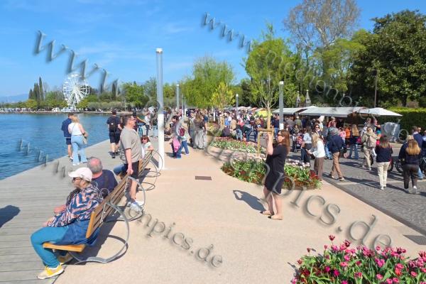 In Bardolino etwa präsentiert sich die Uferpromenade in voller Frühlingspracht. Bunte Blumenbeete, blühende Bäume und das glitzernde Wasser des Sees schaffen eine Kulisse wie aus dem Bilderbuch. Spaziergänger flanieren entlang des Ufers, Radfahrer nutzen die milden Temperaturen für ausgedehnte Touren, und in den Häfen schaukeln die Boote sanft im Wasser. Die Atmosphäre ist entspannt – trotz der Menschenmengen.
