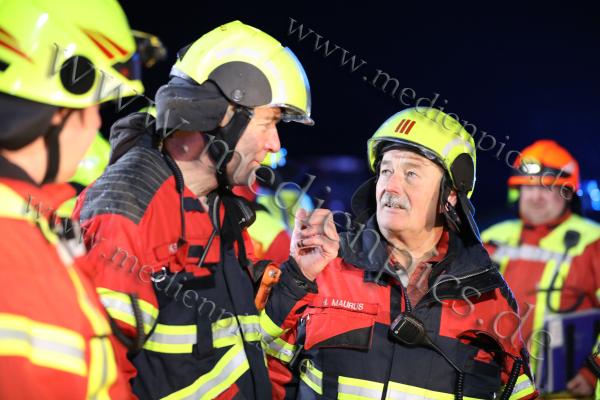 Dachstuhl in Vollbrand – Feuerwehr rettet Stallungen und Tenne – 130 Einsatzkräfte und 7 Feuerwehren im Einsatz – Tiere gerettet – sehr exponierte Lage – Schlauchleitungen hunderte Meter langDurch großen Kräfteeinsatz und schnelles Nachfordern weiterer Kräfte konnte eine Katastrophe abgewandt werdenAm Dienstagabend ging um kurz vor 20 Uhr ein Notruf bei der Leitstelle ILS Weilheim ein. In Pölten, ein Ortsteil von Großweil im Landkreis Garmisch-Partenkirchen, stand ein Dachstuhl und das Dachgeschoss in Flammen. Die Ortswehr Großweil rückte als erstes an. Der Einsatzleiter forderte sofort ein Großausgebot weiterer Feuerwehren nach. Die Flammen schlugen bereits aus dem Dach, dichter Qualm verteile sich im Ortsteil. Schnell versuchten die Bewohner die Pferde ins Freie zu treiben, mit Erfolg. Auch im ganzen Dachgeschoss verbreitete sich das Feuer. Pölten liegt sehr exponiert, die Löschwasserversorgung dort ist unzureichend. Mit hunderten Metern Schlauchleitungen wurde das Löschwasser von Löschteichen herangepumpt. Sieben Feuerwehren und 130 Einsatzkräfte konnten letztendlich das Übergreifen der Flammen auf die Tenne und die Stallungen verhindern. Gegen 21:40 Uhr konnte die Einsatzleitung eine vorsichtige Entwarnung geben. Der Brand war unter Kontrolle, kleine Glutnester mussten noch gesucht und gelöscht werden. Der Schaden dürfte aber in die Hunderttausende gehen. Mit Drehleitern, Atemschutz und mehreren Löschangriffen konnte man noch Schlimmeres verhindern. Zur Ursache konnte die Polizei noch keine Angaben machen, die Kriminalpolizei hat die Brandermittlungen aufgenommen. Eine Person mit einer Rauchgasvergiftung in ein Krankenhaus eingeliefert werden.